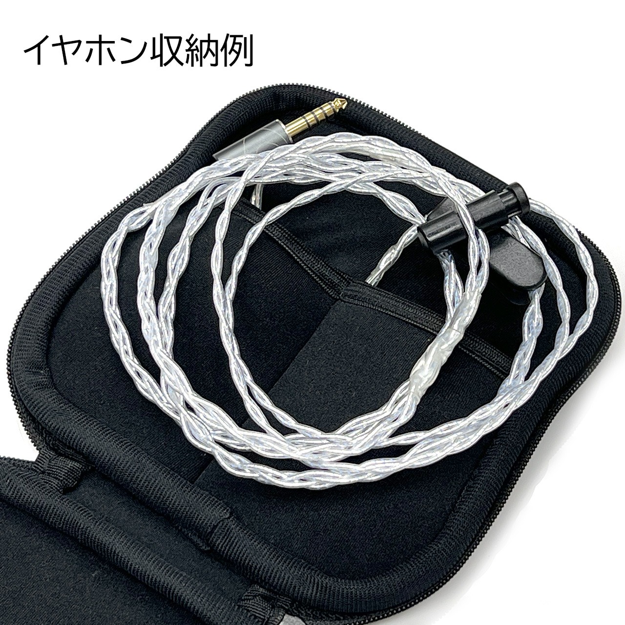 このソフトケースは、ケーブルを比較的緩めに巻き、線材になるべく負荷を与えない状態で収納できるようにデザインされています。内側にはイヤホンを収めるためのポケットも設置されているので、ケーブルとイヤホンを一緒に収めることができます。またケースの素材(ネオプレン)は適度なクッション性があるので、イヤホンを収めた状態でカバンなどに入れても安心です。